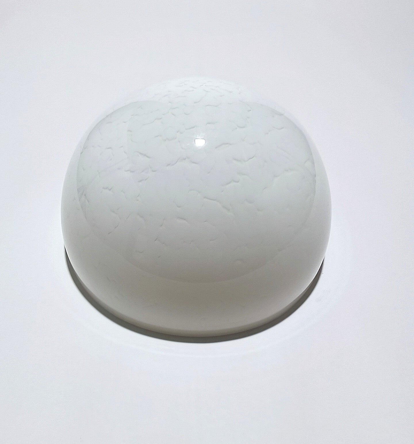 Pantalla de lámpara en forma de hongo con veta blanca.