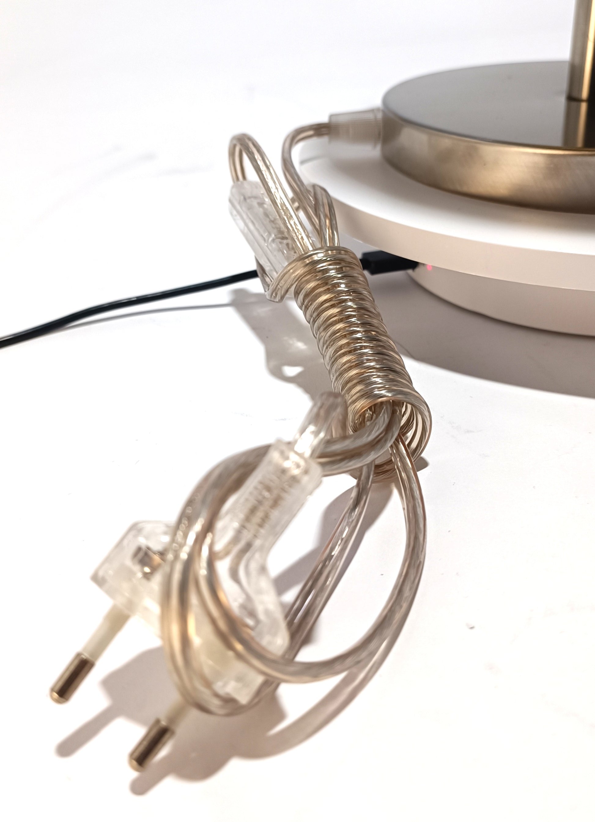Dale un toque único y acogedor a tu espacio con esta preciosa lámpara vintage. Su robusta base de metal se combina con la pantalla de cristal, completamente coloreada, creando una pieza ideal para habitaciones con decoración clásica, retro o ecléctica.