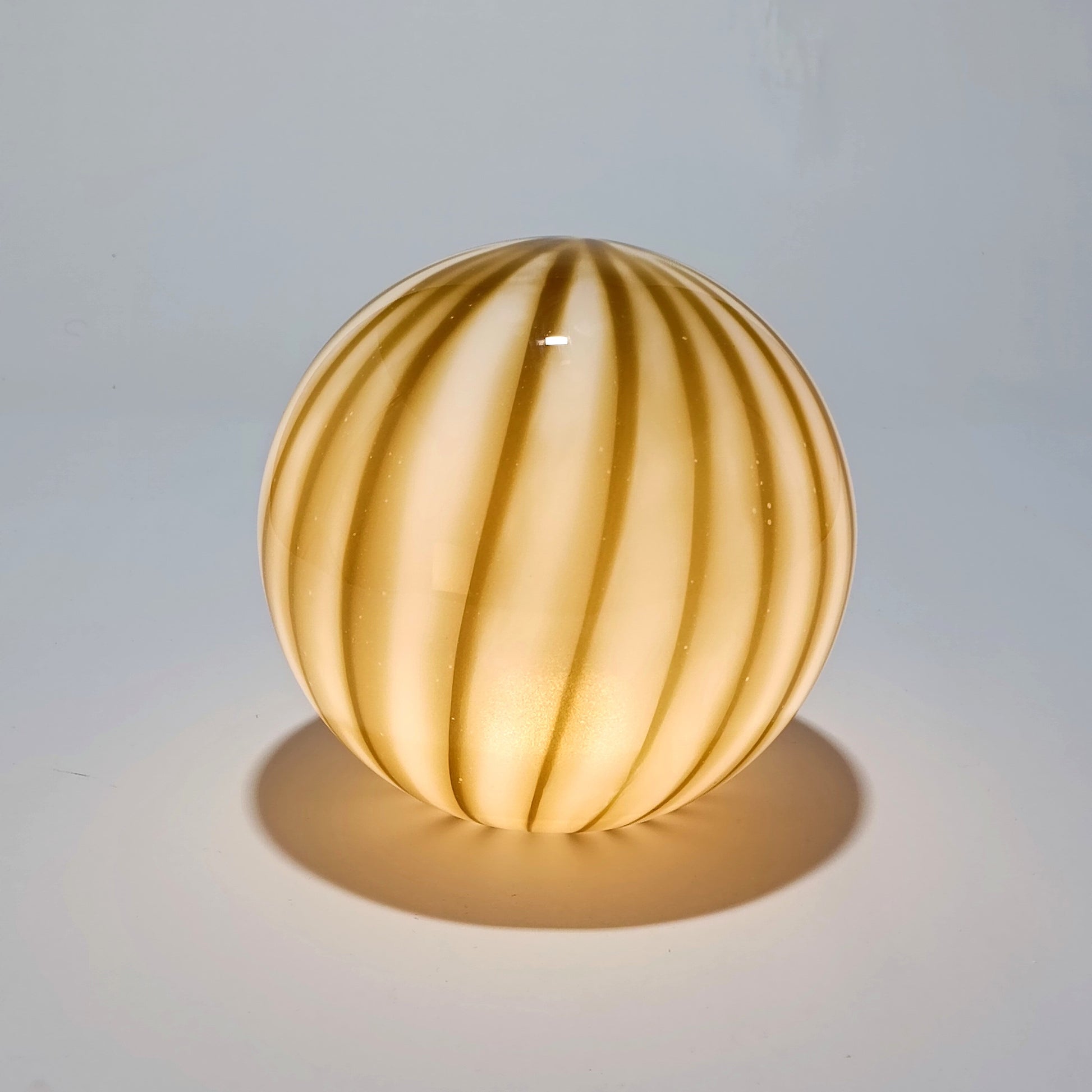 Hecho de vidrio soplado. Al ser un artículo de Outlet , puede presentar ligeras variaciones naturales en el vidrio (tono, intensidad de las rayas o pequeñas marcas del proceso artesanal), que no se consideran defectos.